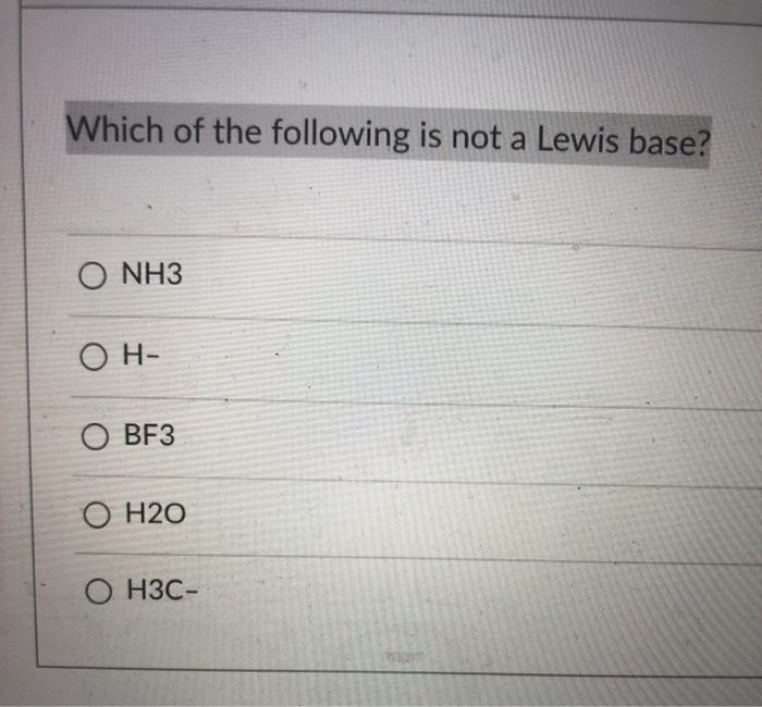 Solved Which Of The Following Is Not A Lewis Base O Nh3 On Chegg Com